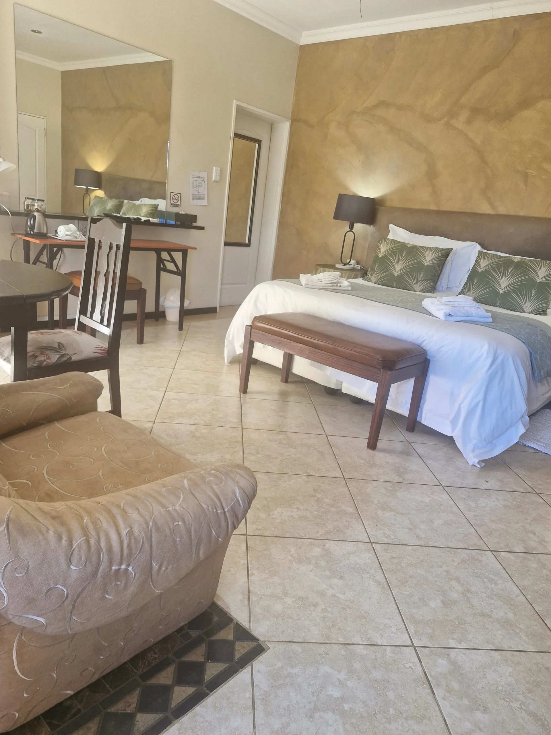 King or twin bed, en-suite shower, bathroom heater. Situated on first floor. Private access to balcony ,pool and Simonsberg mountain view Bring along your DSTV or Netflix details to use on the smart tv in your room.